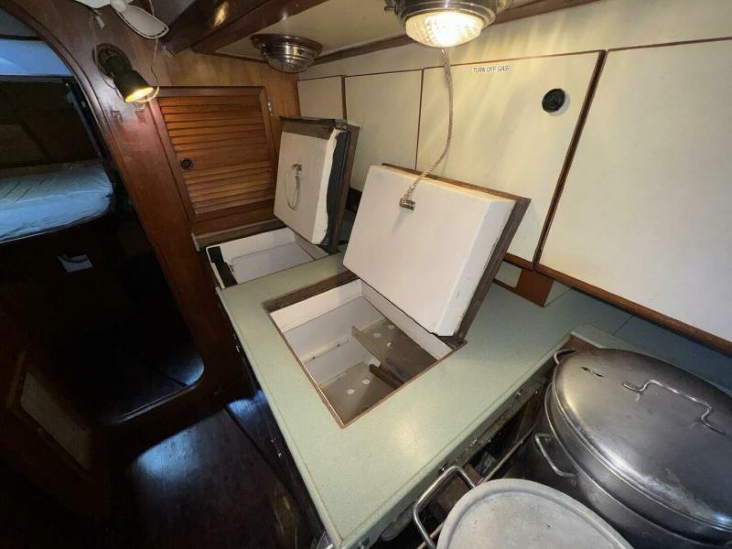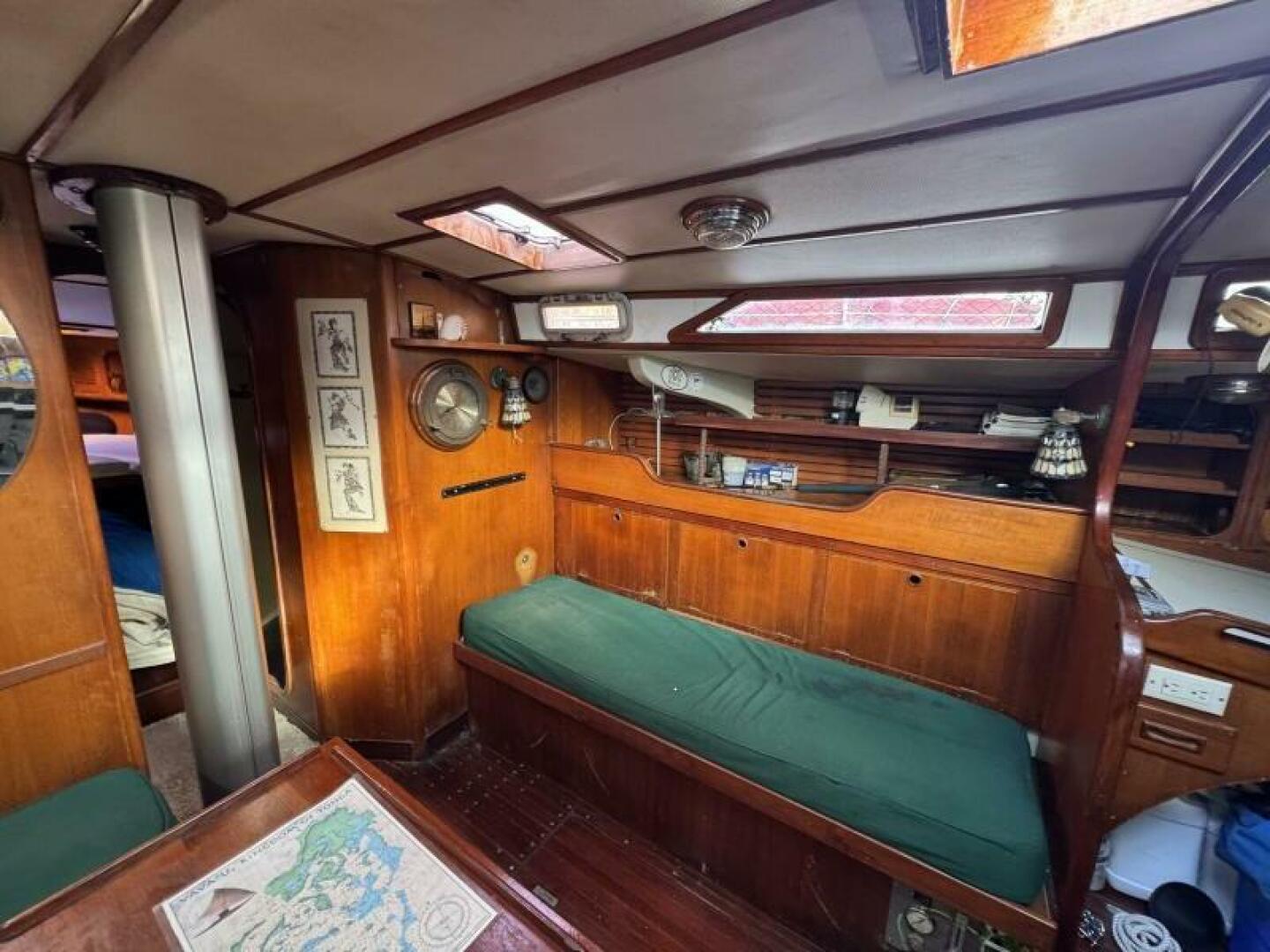 Stepping aboard 'Gallivanter', you are greeted by a spacious aft cockpit and wide side decks, thanks in part to the custom stern extension. The deck layout is optimized for offshore safety and ease of movement, with well-placed handholds and robust deck hardware. Below, the classic Hylas interior offers generous accommodations, a well-equipped galley to port, and a comfortable salon with ample natural light. Forward and aft staterooms provide privacy and storage, while the navigation station is conveniently located near the companionway. The engine room houses a 2004 Yanmar diesel, offering reliable power for extended cruising.